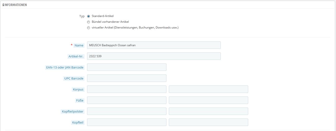Bei der Artikelinformation sieht es mittlerweile so aus :