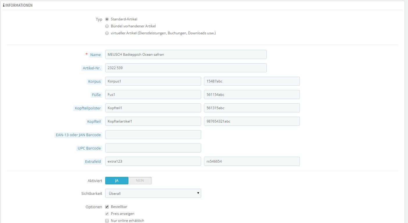 Und falls du in deine selbstdefinierten Felder auch per CSV importieren willst, reicht eine kleine Erweiterung, die hier beschrieben wird: https://www.prestashop.com/forums/topic/157780-solved-import-custom-fields-through-csv-file/