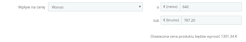 Chodzi o podnoszenie ceny na wariantach produktu (generator cenowy) nie za pomocą wartości (+ 100zł), a za pomocą procentu (+ 10%).