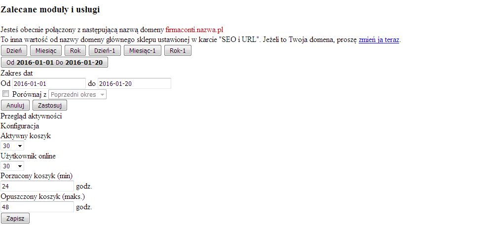 W ustawieniach presty jest natomiast po instalacji wpisany adres serwera czyli firmaconti.nazwa.pl a bazowy URI /prestashop/