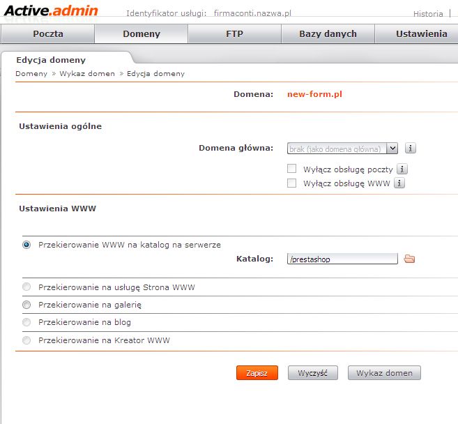 Mam serwer na nazwa.pl i tam też wykupioną domenę, podpiętą do tego serwera. Domena jest tak ustawiona, żeby wskazywała na katalog prestashop na serwerze.