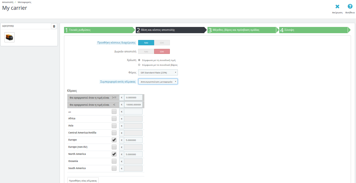 Kogkalidis Posted February 8, 2016 Share Posted February 8, 2016 You have to click PrestaShop -> Carriers. Edit carrier with id=2 as your one carrier and add a second one. In the steps of your carrier, if you click on 2nd one, there is a screen like this As you can see, the first switch is "Add of the handling cost" set to Yes, Free shipping to No, Billing according to price (and not weight), Tax is your own choice, behaviour out of scale either disable or add the cost of the higher scale available.Finally you have the available scales for the carrier.. You just put the price threshold.. And the price of the carrier for each scale..That was it.. If you don't want to attach specific product to specific carrier, you don't have to do anything else..Cheers,Konstantinos A. Kogkalidis Link to comment Share on other sites More sharing options...