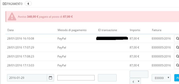 Kong1830 Posted January 29, 2016 Share Posted January 29, 2016 (edited) Salve a tutti, ho un grosso problema! durante un ordine ho avuto un problema con la cache (presumo) perchè io continuavo ad aggiornare lo status in spedito e non lo vedevo aggiornarsi finchè non ho disabilitato la cache. Ora il problema grosso è che io ho impostato che genero la fattura quando aggiorno lo status in spedito, cosi facendo ho mandato 3 volte lo status di spedito ritrovandomi il numero di fattura sballato. In pratica salto dalla numero 2 alla numero 5. C'è un modo per risolvere - nell'immediato tornare al numero di fattura giusta, ossia la numero 5 deve avere il numero 3 e la mia successiva fattura deve essere la numero 4 - poi come risolvere il problema della cache? in allegato trovate gli screenshoot della cache, e l'ultima dell'aver modificato più volte lo status Uso la versione di prestasho 1.6.1.3 e il tema di default Grazie dell'aiuto! Edited March 15, 2016 by Kong1830 (see edit history) Link to comment Share on other sites More sharing options...