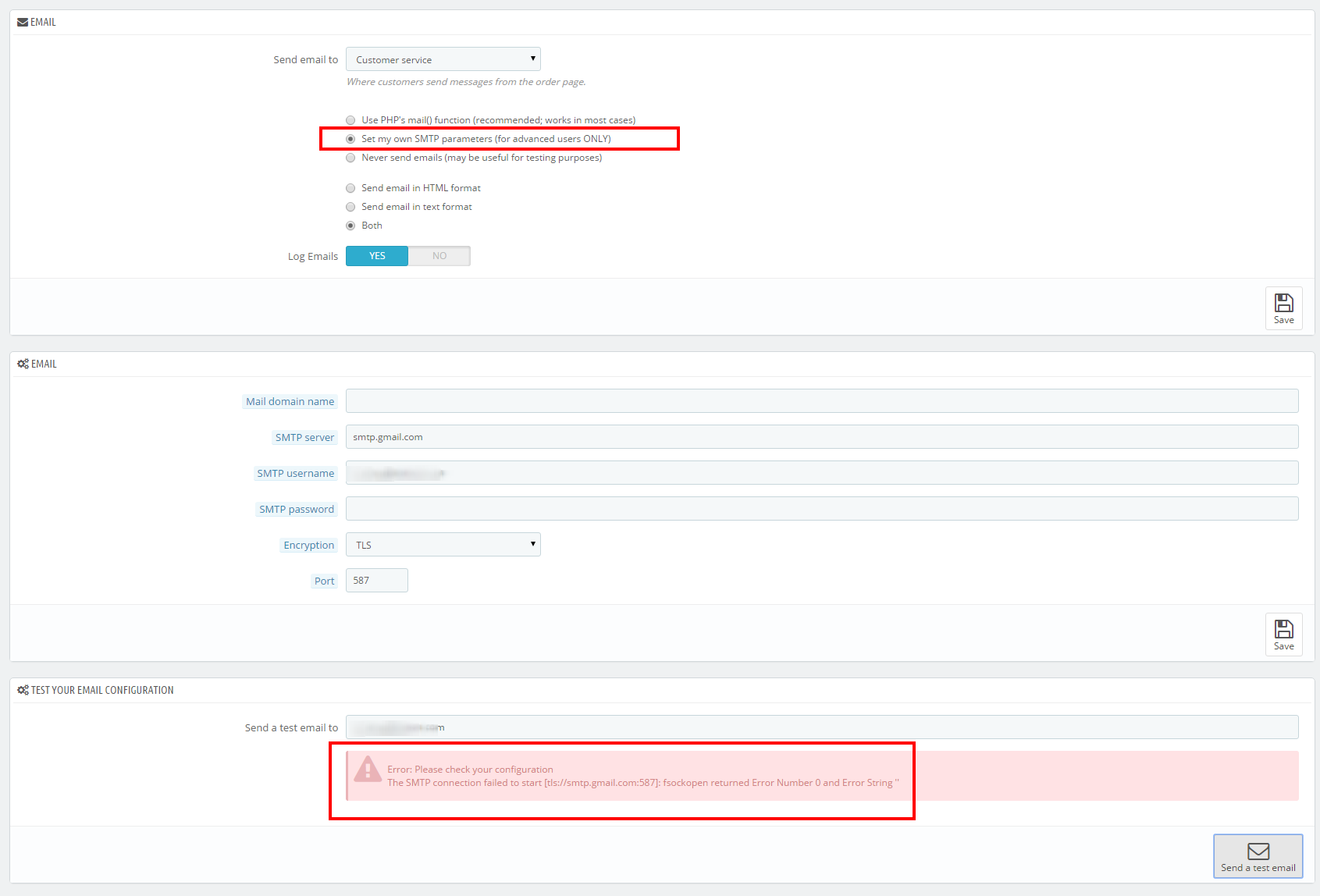 catzarov Posted February 2, 2016 Share Posted February 2, 2016 Hello to all, I use 1.6.1.4 (latest official version). I want to use gmail.com for my outgoing mail. I see the following error: I tried with SSL/TLS and port: 465 or 587 The problem continues to exist! My email in the store used the gmail.com (IMAP email is activated) I need your help, please tell me how to set up SMTP correctly in online store ? Thanks for the separate time for me. Link to comment Share on other sites More sharing options...