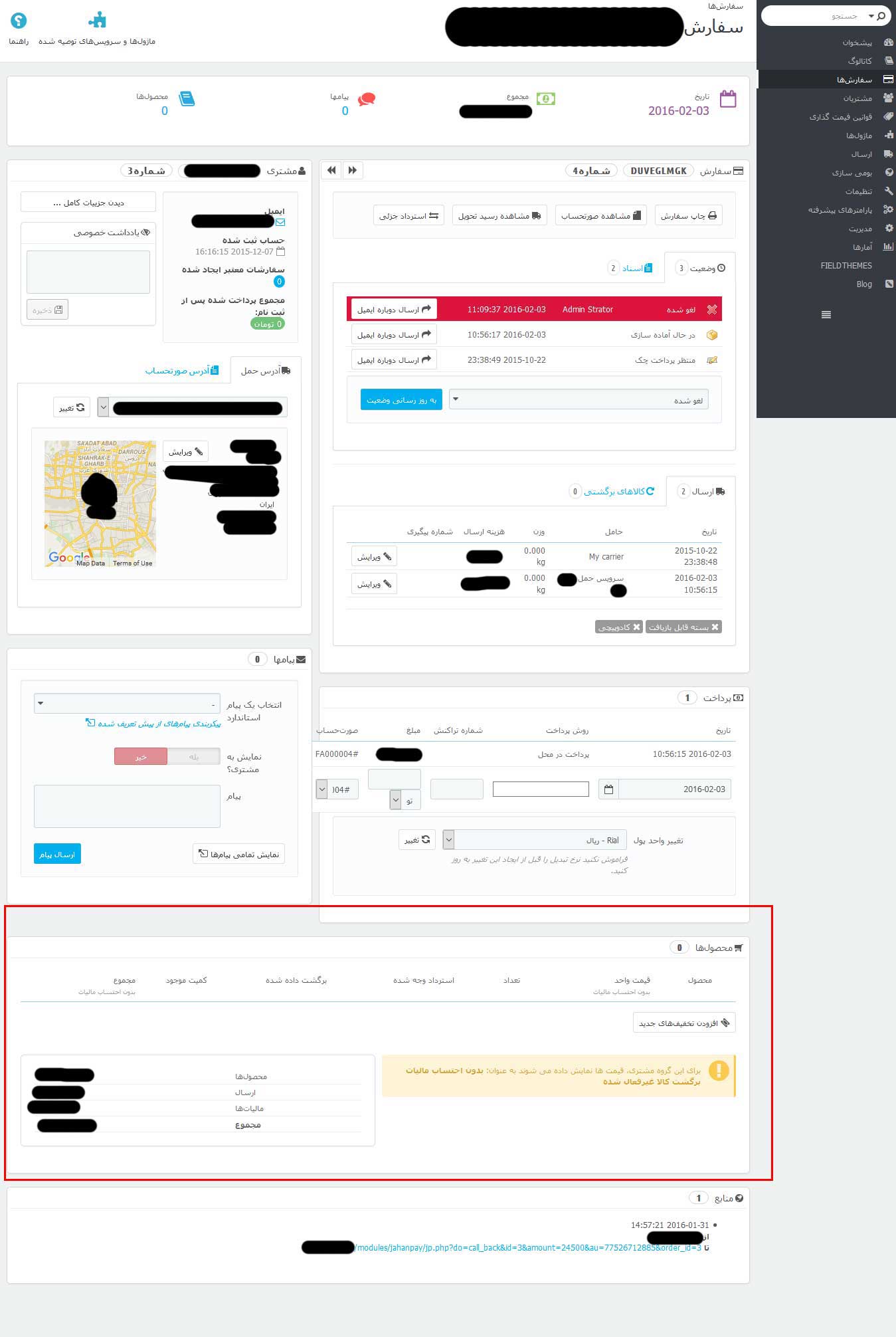 Rosha Posted February 3, 2016 Author Share Posted February 3, 2016 سلام نیاز به بررسی داره دوست عزیز مشکل شما عادی نیست و حدس من اینه که ماژولی در رابطه با حامل یا پرداخت دارید که تداخل ایجاد میکنه موفق باشید تنها ماژولی که نصب کردم و بعدش این اتفاق افتاد ماژول mailalert بود! به غیر از اون هم یه ماژول مربوط به جهان پی رو نص کردم که بعد از اون هیچ مشکلی نبود! CashOnDelivery هم نصب کردم. اینها ماژول های مربوط به حامل و پرداخت هست. mailalert رو دیسیبل و حذف کردم اما تغییری ایجاد نشد. حتی فولدر مربوط به میل آلرت رو از روی هاست هم پاک کردم. اما اتفاقی نیفتاد. راه حل خاصی برای رفع این مشکل به نظرتون می رسه؟ Link to comment Share on other sites More sharing options...