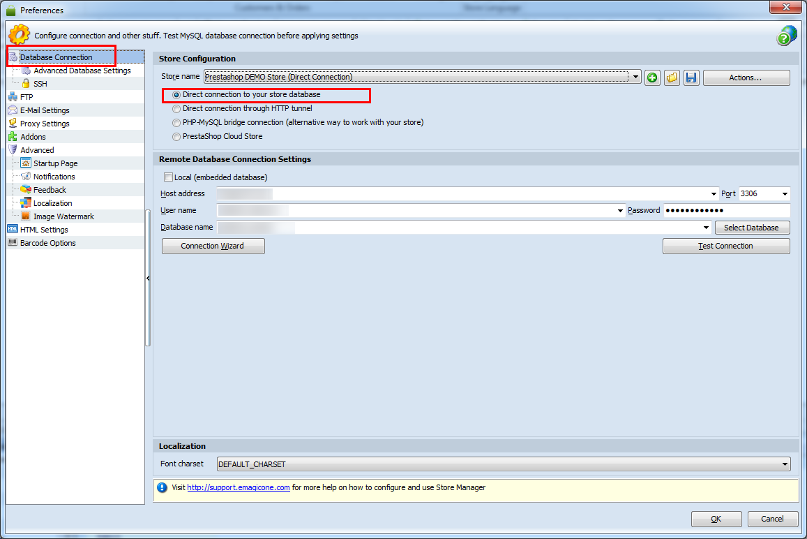 Store Manager connects to PrestaShop database via direct, bridge or HTTP tunnel connection. Please, check what type of connection you use. For that go to Preferences in Store Manager and select Database Connection tab in the left side. Let me know what radio button is checked (see the screenshot)