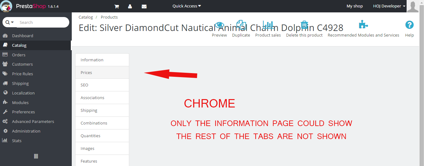 Lothian Posted February 5, 2016 Share Posted February 5, 2016 Hi there, I updated my shop from prestashop 1.6.0.14 to 1.6.1.14 Since the 1 click updating is now working, so I manually installed it in the following steps: 1. copied the latest version of prestashop to replace the current one 2. replace setting.inc.php 3. update the script from install/upgrade/upgrade.php 4. delete the install folder. It looks like everything is fine, however, when I access the backend in admin panel. There is something did not appear correctly, in catalog, products, the products tab, only show the information tab, the rest of them does not show in chrome. But, it works fine in firefox. Plz check the attachments. Any idea what was wrong? Regards Link to comment Share on other sites More sharing options...