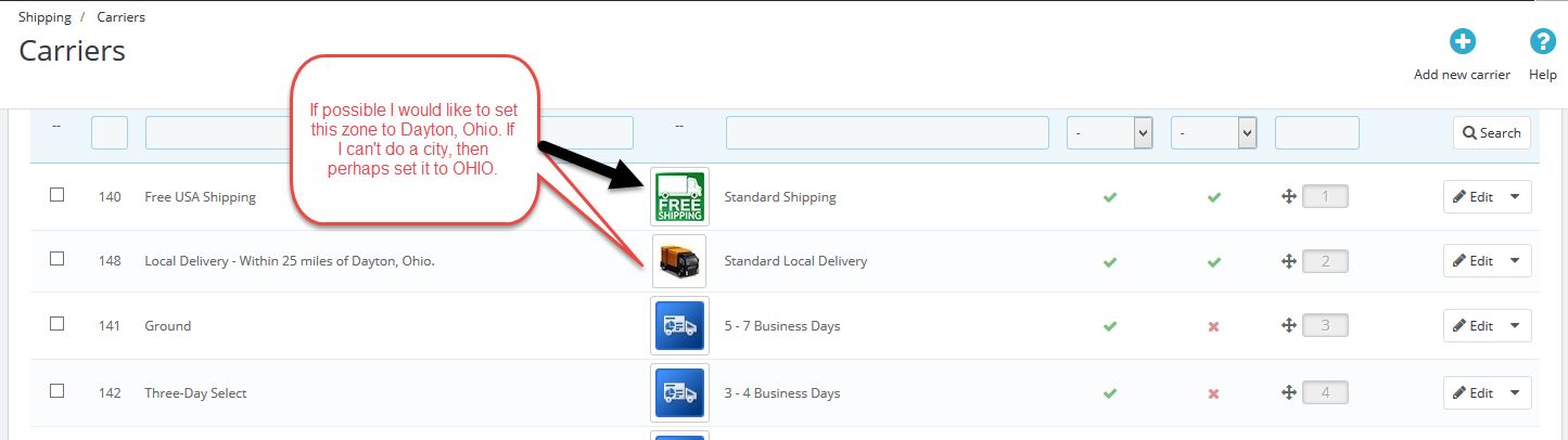 I have 3 shipping options: Free Shipping Continental USA (which I have zones set up for), UPS (all regions) and a Local Dayton, Ohio only delivery that I currently have set as Continental USA.