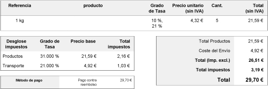 Nashgull Posted February 8, 2016 Share Posted February 8, 2016 (edited) Buenas, es mi primer mensaje en este foro, estoy realizando una web con prestashop y ahora las facturas me aparece bien pero en el producto aunque su IVA sea a aplicar el 10%, aparece reflejado 10% y debajo 21% (aunque la cantidad sea el resultado de aplicar únicamente el IVA adecuado). En el desglose del IVA, ya se termina de liar del todo, cuando el envío es gratuito y se trata de un producto que su IVA es el 10%, aparece un desglose de IVA 31%, me suma el IVA que aparecía en el producto de 10% y 21%, aunque el resultado sigue siendo de aplicar el IVA correcto del 10% del producto y no del 31% como indica. No sé como solucionar eso, a ver si me sabeis decir, intento colocar una imagen de la factura a ver si lo entendeis. Muchas gracias por adelantado y espero colocar el post de la forma correcta y lugar adecuado. Saludos. Edited February 16, 2016 by Nashgull (see edit history) Link to comment Share on other sites More sharing options...