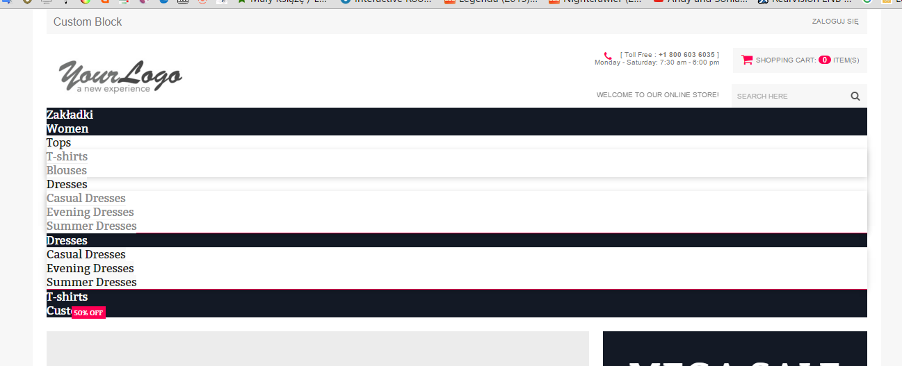 Hej. Mam problem z górnym menu. Wygląda ono tak jak na załączonych zdjęciach. Hosting w home.pl (pliki .httacces w /themes i w /modules zmienione z FilesMatch na Files - wszystko ok) Prestashop najnowszy, a theme to Madame fs!