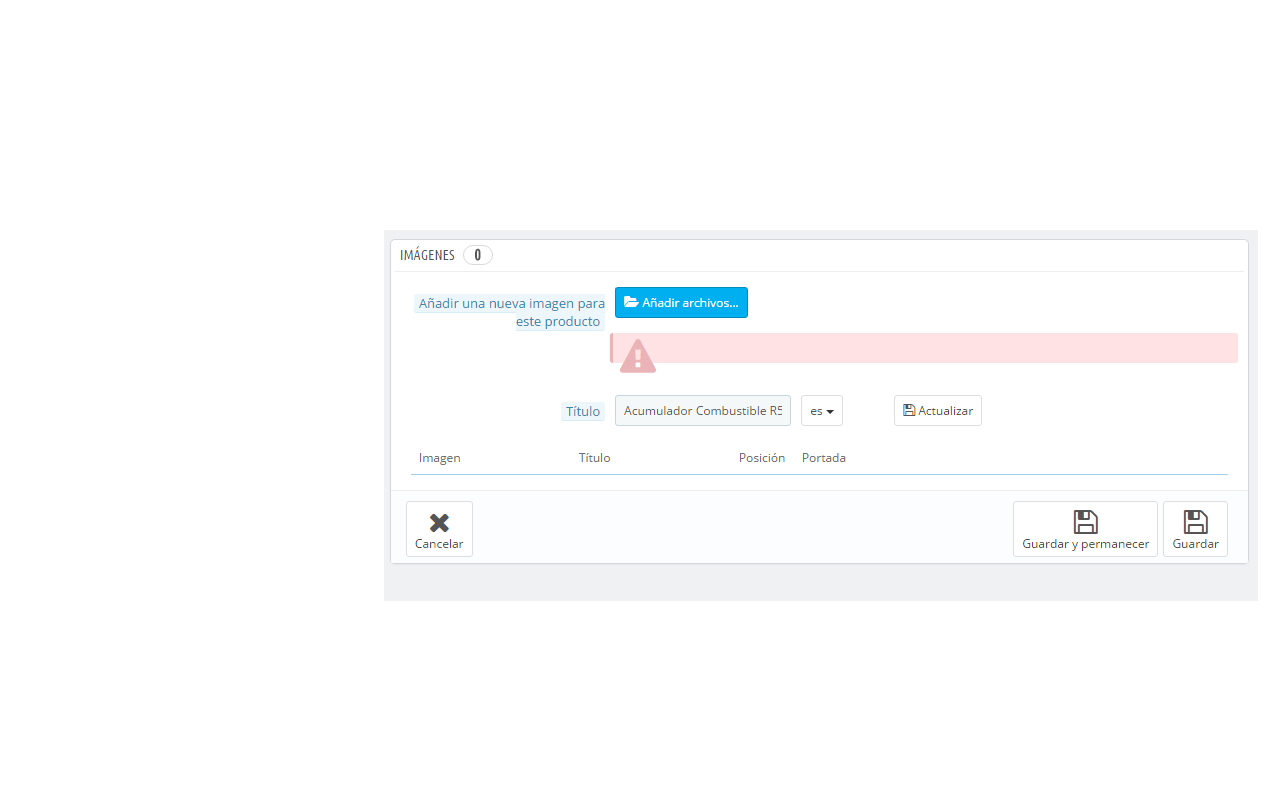 Javile Posted February 10, 2016 Share Posted February 10, 2016 Versión Prestashop: 1.6 1.4 Plantilla: Selling Cars Hola, el problema que tengo es que cuando añado las imágenes no las carga, ha ido bien toda la tarde he metido algunos productos hasta que ha dejado de ir sin motivo aparente. Esto es lo que sale: Espero que podáis ayudarme, Un saludo y gracias de antemano Link to comment Share on other sites More sharing options...