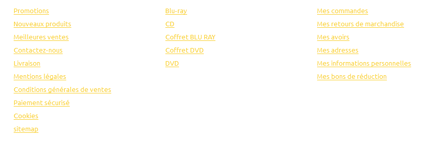 [email protected] Posted February 17, 2016 Share Posted February 17, 2016 Bonjour, Je suis d'accord avec Oron, votre texte en haut de page ne ressort pas assez bien ( rouge sur rouge ), agrandir le texte sur les page CGV, Cookies, paiement, etc...., le numéro de siret Les images de votre slider sont un peu distendues Votre bloc bas de page d'accueil " Bienvenue sur notre boutique " vous partez avec un texte grand, puis moyen pour finir petit ( j'ai l'impression d'être chez l'ophtalmo pour un contrôle de la vue ) Par contre sur votre page Blu Ray, je l'a trouve bien, car il y a du blanc, c'est plus agréable a regarder Link to comment Share on other sites More sharing options...