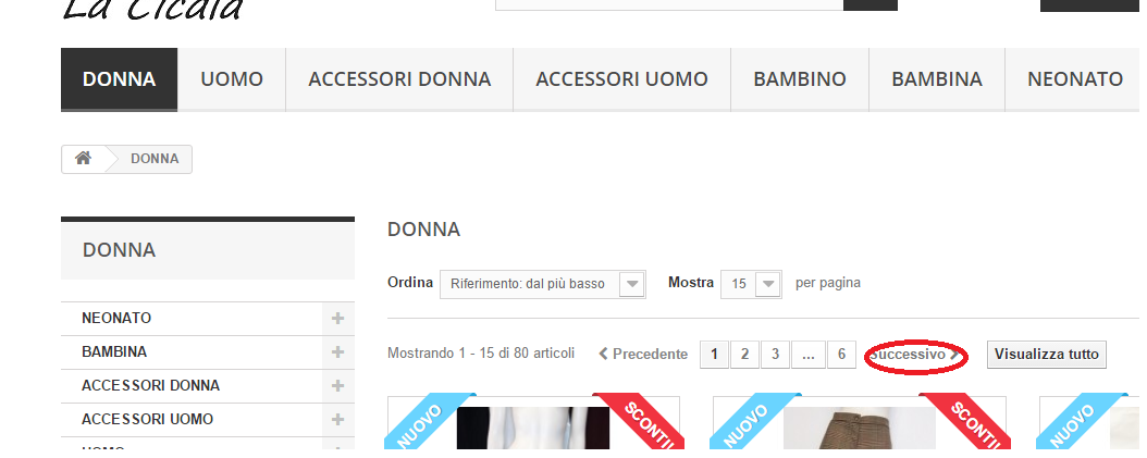 Matoca Posted February 15, 2016 Share Posted February 15, 2016 Buonasera a tutti, Non riesco a risolvere questo problema http://lacicala.biz/3-DONNA1 e clicco su successivo http://lacicala.biz/3-DONNA1#/page-2Non visualizzo i prodotti seguenti, solo su questa categoria.Ho anche notato che sulle altre categorie la chiamata alla seconda pagina avviene in modo diverso.Come ad esempio qui sotto http://lacicala.biz/16-UOMO?p=2Come posso risolvere ?Grazie a tutti Link to comment Share on other sites More sharing options...