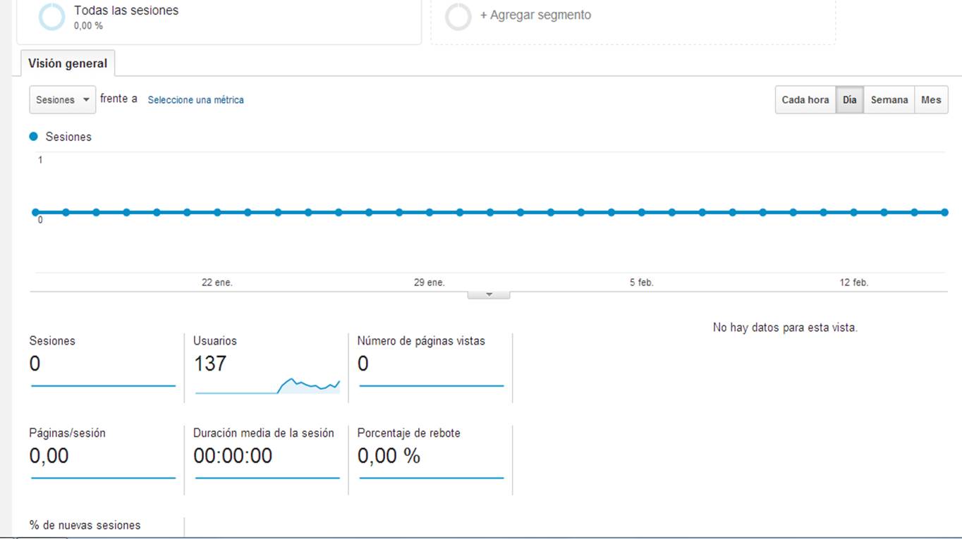 kromagency Posted February 16, 2016 Author Share Posted February 16, 2016 Buenas tardes, si haber eso es lo que hemos hecho en todo el proceso y no recoge datos,solo muestra usuarios. Muestro pantallazo de analytics. el modulo no funciona porque sale el código en la etiqueta <body> pensamos y necesita estar en el <head> Link to comment Share on other sites More sharing options...