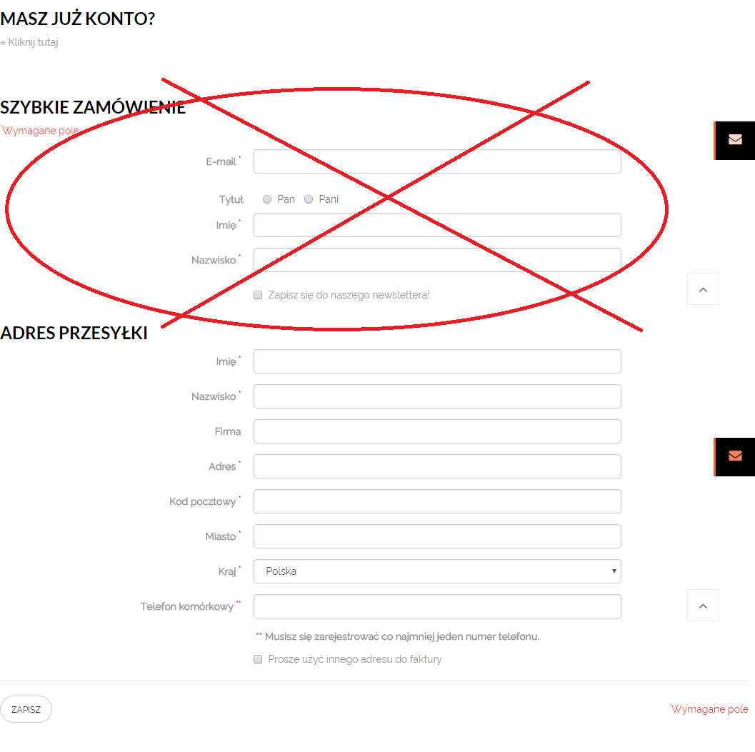Chciałbym wyłączyć pola zakreślone w załączniku, tak aby przy szybkim zamówieniu od razu podawać adres i zamawiać. Czy można to zrobić z menu admina albo kodem?