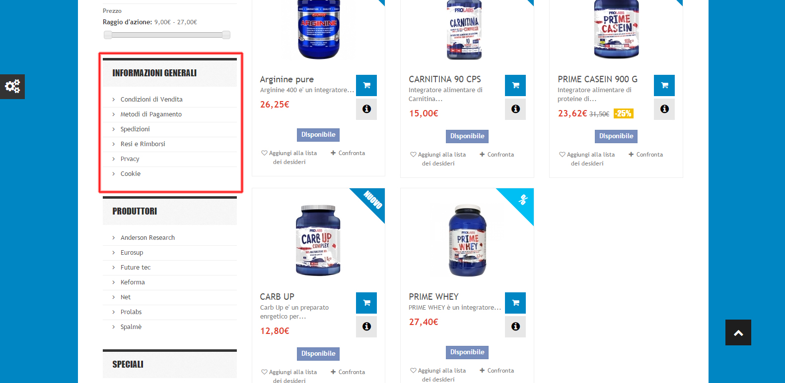 venturapeppe Posted February 21, 2016 Share Posted February 21, 2016 Salve, è possibile inserire blocco CMS all'interno di articoli? Mi spiego meglio Questo il mio blocco informazione cliccando si apre la relativa pagina (in questo momento così) Volevo però per far che il blocco informazioni si visionasse nella colonna di sinistra, in maniera tale che chi visiona il sito abbia la possibilità di leggere le altre informazioni senza dover tornare indietro o andare nel footer per trovare le altre info, tipo metodi di pagamento, spedizione, reso e rimborsi e ottenere questo Sono andato su posizione moduli, posizioni, ho cercato display leftColumn e li ho cercato la voce bloccocms, vado su modifica e vedo le eccezioni in quali il blocco non appare, cercavo la voce artilce o content, ma non c'è, quindi non so quale voce devo disattivare per farlo vedere. Grazie Link to comment Share on other sites More sharing options...