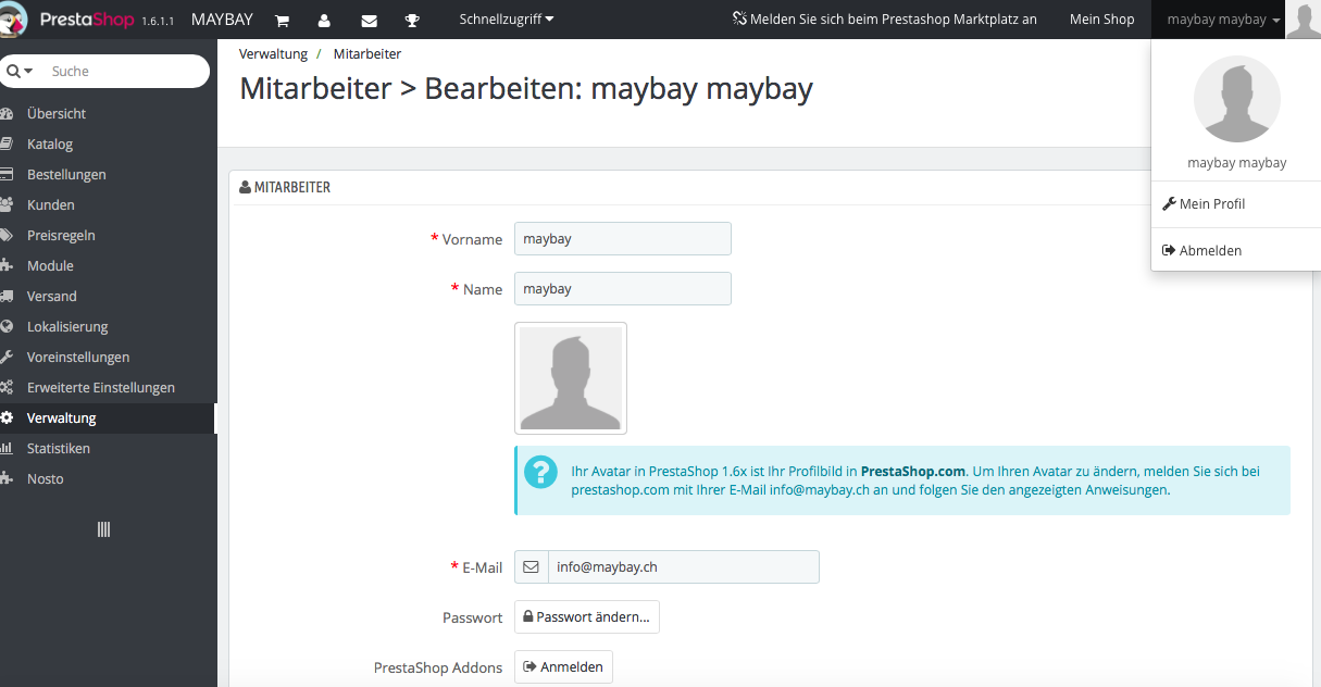 Sporter Posted February 22, 2016 Share Posted February 22, 2016 Hallo Wir haben einen Prestashop aber kein Login für die Seite von Prestashop.com Wen wir in unsere Backoffice rein gehen können wir oben rechts auf das Profil Klicken und da steht Mein name und Mein Profil. Es sollte aber dort Stehen Mein Prestashop Account und Mein Profil wie kommen wir zu unserem Prestashop Login? Wir haben den Shop installiert bekommen und der Installateur sagt uns wir haben kein Login. Was wir aber müssen ist auf den FTP Server wo die ganzen Daten sind. Unsere Seite ist www.maybay.ch Im voraus vielen Dank Link to comment Share on other sites More sharing options...