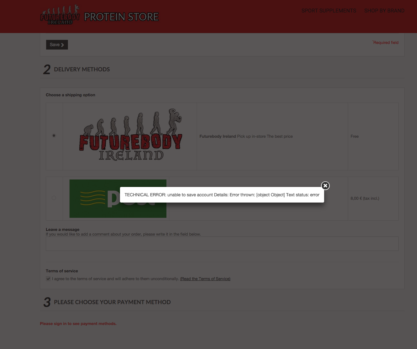TECHNICAL ERROR: unable to save account Details: Error thrown: [object Object] Text status: error