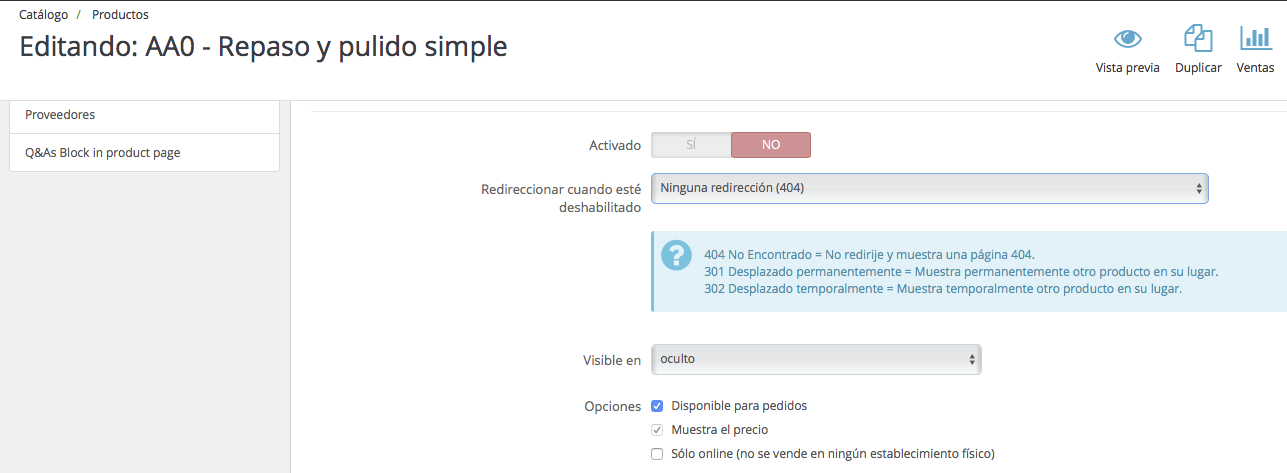 javgoji Posted March 8, 2016 Author Share Posted March 8, 2016 Muchas gracias por vuestra ayuda. Perdonad que no haya sido más explícito. Os muestro imágenes. El producto no esta activado y tampoco esta visible en tienda. Sin embargo, en el apartado de Seo por defecto ha creado un index. Perdón por mi incultura, pero ¿ a que nos referimos con "Yo pondría en el header para esos productos un noindex" ? ¿ Podéis mostrar una imagen ? ¿ Alguna pista ? Ando perdido.......y no se como hacerlo. Link to comment Share on other sites More sharing options...