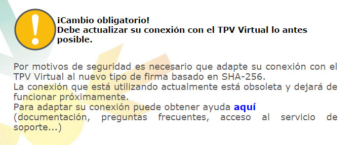 javiergracialobo Posted February 25, 2016 Share Posted February 25, 2016 (edited) Ante todo pedir disculpas si este tema ya se ha tratado aquí pero llevo bastante tiempo intentando hacer funcionar el módulo de pago con Redsys y no he sido capaz, he visto centenares de videos, he leido tutoriales, incluso he llamado al centro de atención al cliente de redsys, pero hasta el lunes no pueden atenderme. Pues bien, cuando entro a la zona de adminsitración de mi TPV en redsys me aparece el siguiente aviso: Pero entro en Comercios / Consultas / Ver clave y me aparece que tengo clave 256, por lo que no se si este mensaje es sólo informativo o tengo que hacer algun cambio. Como dato diré que nunca había estado activo el modo de pago con tarjeta, al intentar configurarla no me deja pagarla, y llevamos con ella desde diciembre de 2015 pero ahora la estamos implementando en la web. Mi prestashop es 1.6.1.2 y el redsys es 2.8.5. La configuracion que pongo en el modulo es la siguiente: En nombre no me deja ponerlo con un espacio ya que es un nombre compuesto, si lo pongo con espacio me da error al guardar la configuracion, pero si lo pongo junto lo acepta, aunque en los datos de administración del TPV en redsys aparece con un espacio (JUGUETES XXXXXX), aunque en el modulo debo poner JUGUETESXXXXXX (no es erótico, es un nombre de persona jeje) Además he copnfigurado el pago de primera hora en entorno real, no se si es obligatorio hacerlo primero en pruebas, de hecho en pruebas me deja poner mi número de tarjeta para simular el pago y luego al darle a pagar me sale un error, no se si es asi el modo de pruebas. Pues cuando lo tengo en entorno real, meto los datos reales, nombre sin espacio, FUC, clave 256 y demás y cuando doy clic en pagar mediante tarjeta no puedo. Además, al dar en cerrar se cierra la pantalla y no vuelve a la tienda, tampoco es tan importante porque debería funcionar el pago: No se ya que hacer, he hecho de todo, pero al ser mi primera vez se me está haciendo un poco cuesta arriba, llevo bastante tiempo intentando configurarlo sin exito y ya he tenido que venir aquí a pediros ayuda. Así que muchas gracias por todo y espero poder solucionarlo pronto, Hasta ahora compañer@s. Edited February 25, 2016 by javiergracialobo (see edit history) Link to comment Share on other sites More sharing options...