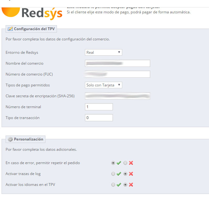 javiergracialobo Posted February 28, 2016 Author Share Posted February 28, 2016 Si tienes la documentacion puedo desarrollar el modulo, ya he realizado varias para Perú. O si tienes el modulo lo puedo corregir, puedes contactarme a [email protected] Mi tienda esta en http://modulos-prestashop-peru.castrocontreras.com/ Muchas gracias Víctor, pero preferiría hacerlo yo y así aprender, te agradezco mucho tu ofrecimiento Hola Javier: Nosotros acabamos de poner en marcha el pago por redsys en nuestra tienda online teresilla.com. Puede que estés teniendo problemas de confusión entre entorno real/entorno de pruebas. Te digo como funciona: En principio redsys te da de alta en entorno de pruebas. En el manual de redsys (si no lo tienes, dímelo y te lo mando) te dice que es obligatorio hacer un par de pruebas en entorno de pruebas primero (una compra y una devolución) con un número de tarjeta ficticio que te dan en el manual. Para darte de alta en entorno de pruebas tienes una pagina de configuración, donde debes introducir tus datos, que es distinta de la página de configuración del entorno real. En la imagen se explica: Para funcionar en entorno de pruebas debes activar "entorno de pruebas" en el módulo de prestashop. Una vez hayas hecho las pruebas con éxito, debes comunicarlo (nosotros tuvimos que comunicarlo al banco que nos proporcionó el TPV virtual, quien a su vez se lo comunicó a REDSYS. Entonces REDSYS te mandará otro correo con datos para el entorno real, y debes introducirte en la página de configuración del entorno real (figura anterior) para introducir esos datos, luego cambias en el modulo de Presta a "entorno real" y ya pueden complar tus clientes normalmente. Dime si eso soluciona tu problema. Saludos, Enrique de Justo Webmaster de Teresilla ropa infantil Muchísimas gracias, ya lo he entendido mejor, es que pensaba que los datos que había recibido eran los datos finales, y por eso no me funcionaba. Ahora ya he hecho los tests con las tarjetas ficticias, el primero OK y el segundo me da error, está claro que es así. Entonces ahora debo ir al banco para solicitar los datos reales y con eso ya lo tengo todo terminado y listo para funcionar. Perfecto, me ha sido de muuucha utilidad, si es más fácil de lo que parece jeje. De nuevo muchas gracias, sois la mejor comunidad Link to comment Share on other sites More sharing options...