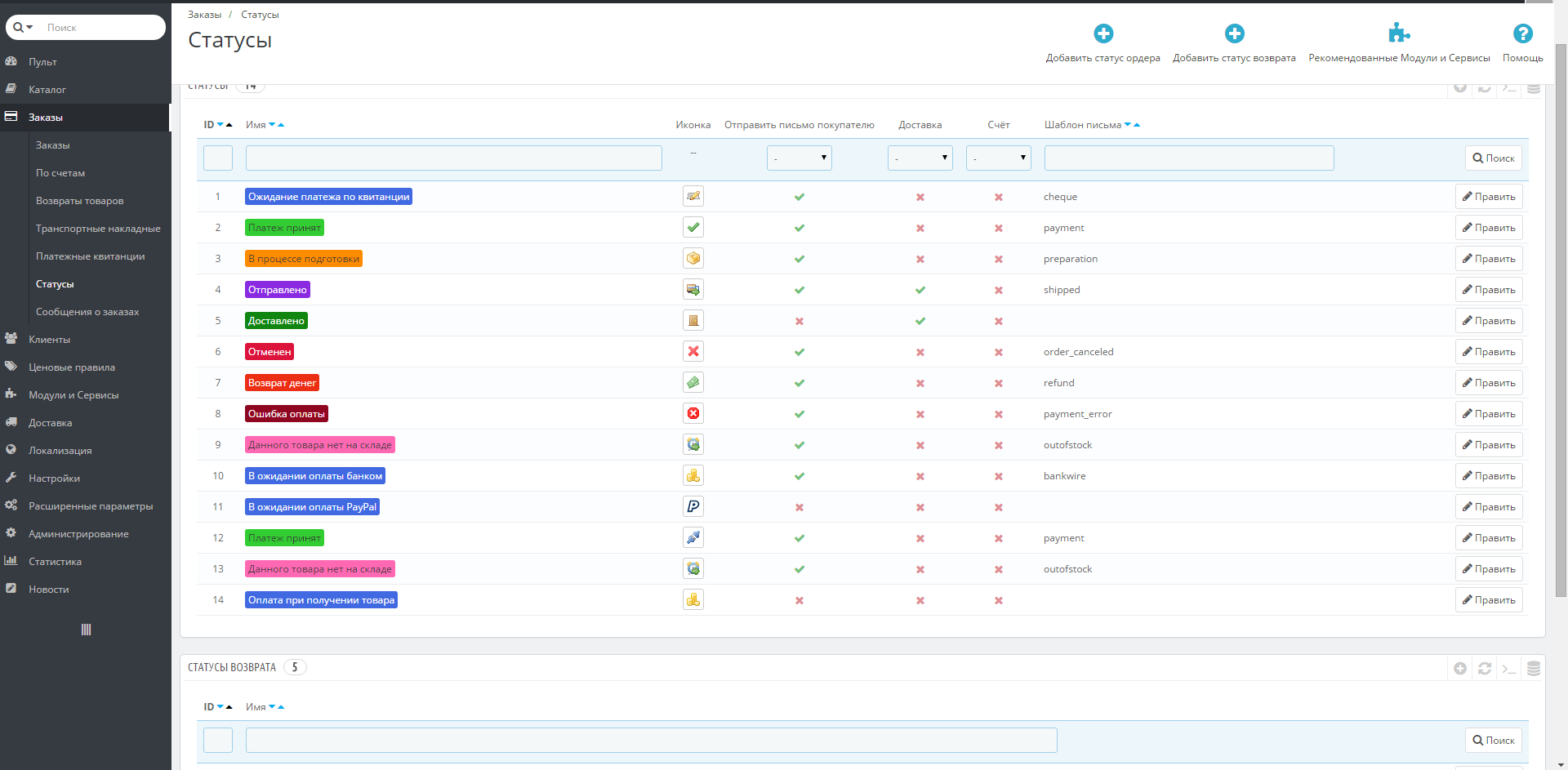 Setgro Posted February 26, 2016 Share Posted February 26, 2016 (edited) Здравствуйте! Подскажите как можно удалить не нужные статусы заказов в версии 1.6. Есть только возможность правки, а вот удалить нет. Скрин во вложении. Edited February 26, 2016 by Setgro (see edit history) Link to comment Share on other sites More sharing options...