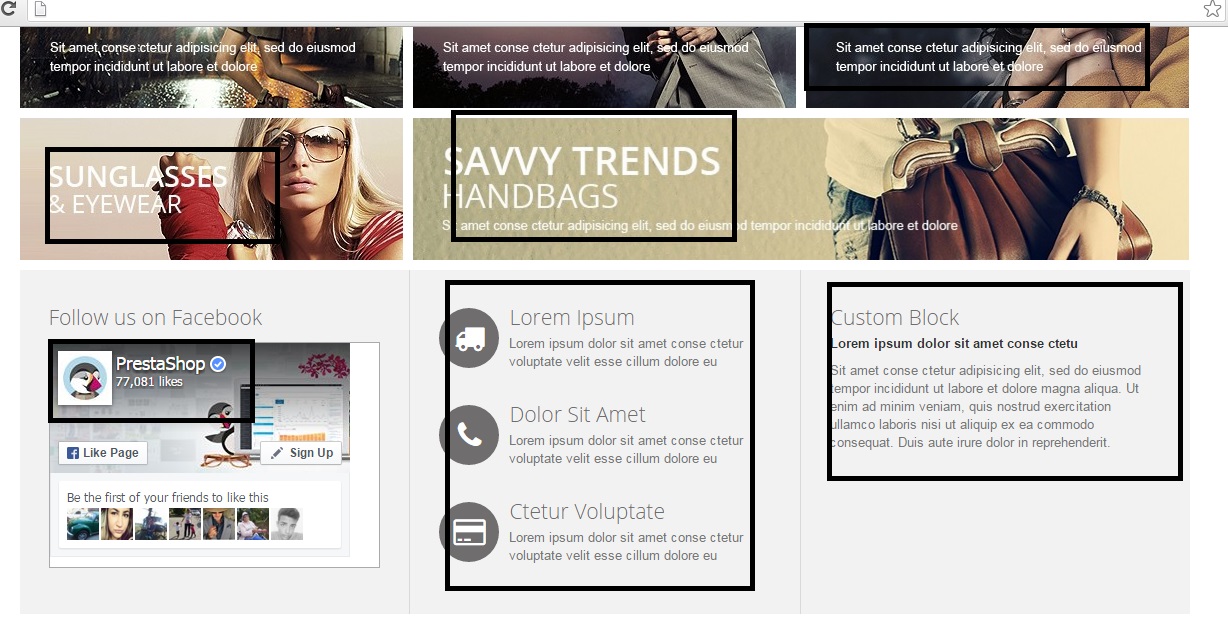 Simonas Invertus Posted March 4, 2016 Share Posted March 4, 2016 Places that you highlighted are modules and they are configured from backOffice. As you did not wrote that you want to do, nobody can help you. You should look for social networking block, cms info block, theme configurator Link to comment Share on other sites More sharing options...
