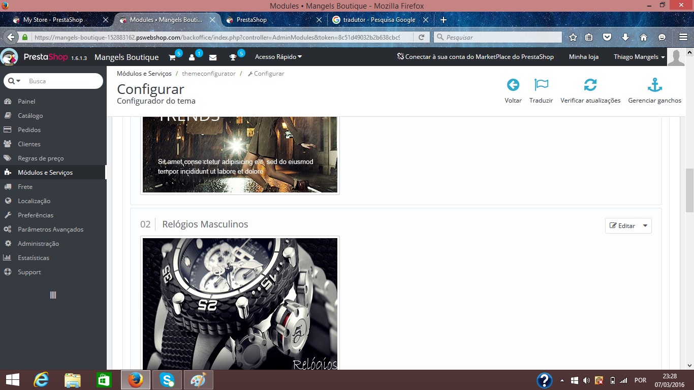 Daniel - PrestaBR Posted March 11, 2016 Share Posted March 11, 2016 Tente gerar um novo arquivo .htaccess. Em Admin > Preferências > SEO e URLs: Desative e ative novamente as URLs amigáveis. Em seguida limpe o cache do seu navegador ou atualize a página sem o cache (CTRL + F5). Link to comment Share on other sites More sharing options...