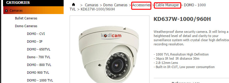 Angelx Posted March 16, 2016 Share Posted March 16, 2016 Hey guys, thanks for your help. I have the problem that some products appear associations (categories) where they are not selected. Example:I have selected; Camaras> Domo Camaras> DOMO - 1000 TVL. But in my website apper: Home > Camaras>Domo Cameras>Accessories>Cable Manager>DOMO - 1000 TVL>KD637W-1000/960H Include two wron categories . Image 1: See chekbox selectes on product Image 2: See wrong mapping categories My PS version is: PrestaShop™ 1.5.6.0 My Website: Kodicam.com How to fix it Link to comment Share on other sites More sharing options...