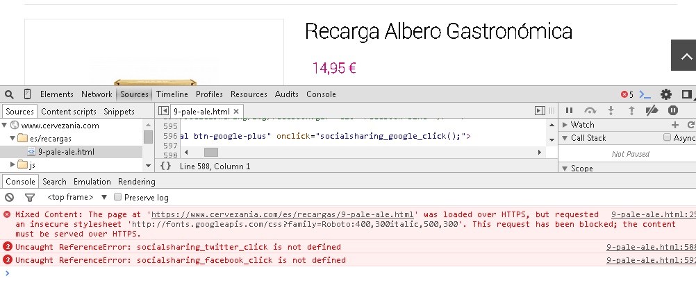 acosta Posted March 17, 2016 Share Posted March 17, 2016 Buenos días, Tenemos configurado en nuestra tienda el módulo social sharing y aparece correctamente, pero los enlaces no abren ventana alguna ni enlazan a nada. Al inspeccionar desde Chrome devuelve mensaje de error, pero no tengo ni idea de como resolverlo. Entiendo que es una incompatibilidad con el tema, pero no sé como solucionarlo. Un saludo, Link to comment Share on other sites More sharing options...
