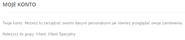 rusiano Posted March 17, 2016 Share Posted March 17, 2016 Witam, chciałbym się zapytać w jaki sposób można uzyskać nazwę grupy, w której znajduje się klient. Chciałbym aby po zalogowaniu i przejściu do strony adres.pl/moje-konto wyświetlić prosty komunikat w stylu: Należysz do grupy: Klient, Klient Specjalny. Jakieś pomysły jak pobrać grupy, do których należy klient? Link to comment Share on other sites More sharing options...