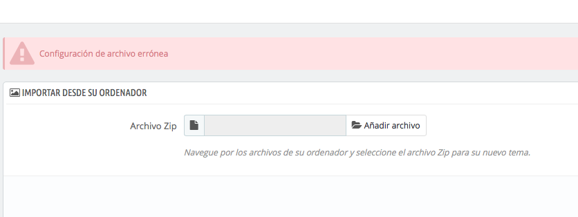 Fernando1989 Posted March 24, 2016 Share Posted March 24, 2016 Cuando lo subes por ftp a la carpeta themes y vuelves al front office para instalarlo, ¿Te sale el tema? ¿Puedes activar el modo debug, subir el zip de forma normal desde el front office y decirnos que error te da si es que te da error? Link to comment Share on other sites More sharing options...
