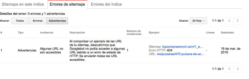 Fernando1989 Posted March 21, 2016 Share Posted March 21, 2016 El error que te da es un 404 (página no encontrada) El sitema que tienes activo en tu tienda es http://topcomprasmovil.com/1_es_0_sitemap.xml ¿Has modificado el stock recientemente? ¿Es posible que enviaras el sitemap y luego modificaras al catálogo? ¿Cuantos errores te marca webmater tools que tiene el sitemap? ¿Puedes poner algunos ejemplos de error con el enlace completo que no encuentra? 1 Link to comment Share on other sites More sharing options...