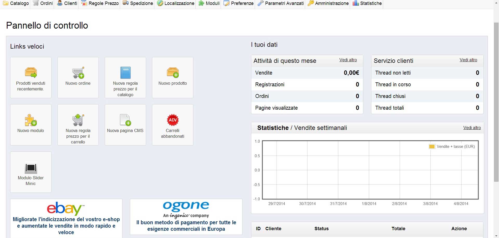 GrandeLupo Posted March 21, 2016 Share Posted March 21, 2016 (edited) Ciao a tutti, vorrei aggiungere un links veloce all'Home page del BO, ma non riesco a capire come si fa o se è possibile.In pratica ci sono già alcuni (con la propria icona), tipo: Prodotti venduti recentemente. Nuovo ordine Nuova regola prezzo per il catalogo Nuovo prodotto Nuovo modulo Nuova regola prezzo per il carrello Nuova pagina CMS Carrelli abbandonati Io per alcune esigenze grafiche ho bisogno di un link (con la sua bella icona) CLIENTI Lo so che è bello ed evidente in alto nella barra, ma come ho detto ne ho esigenza che stia nei links veloci, così come un modulo installato che si chiama NEWS, vorrei che fosse li presente. Versione: PrestaShop 1.5.4.1 Attached Thumbnails Grazie a tutti per il vostro aiuto. Una buona settimana Edited March 21, 2016 by GrandeLupo (see edit history) Link to comment Share on other sites More sharing options...