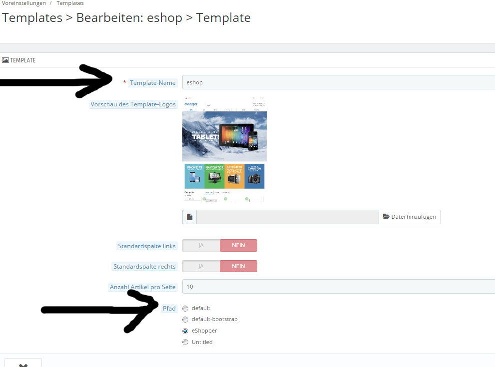 Template Name und Pfad ändern