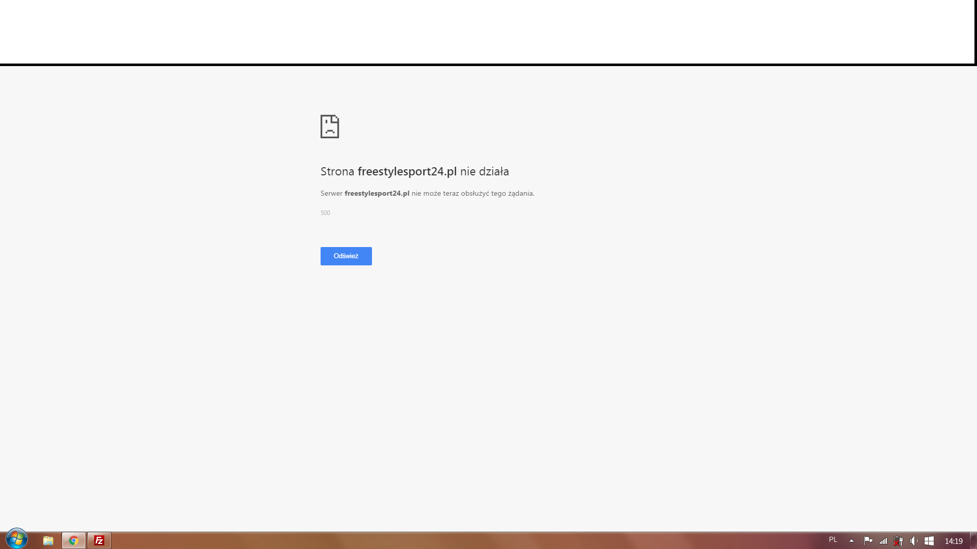 Najprawdopodobniej dziś w nocy przestała działać moja strona pod adresem freestylesport24.pl. Nic nie było robione w ciągu ostatnich kilku dni, i nagle przestało działać. Back office sklepu działa, nie działa front office i podstrony, jest biała strona. Co może być nie tak?