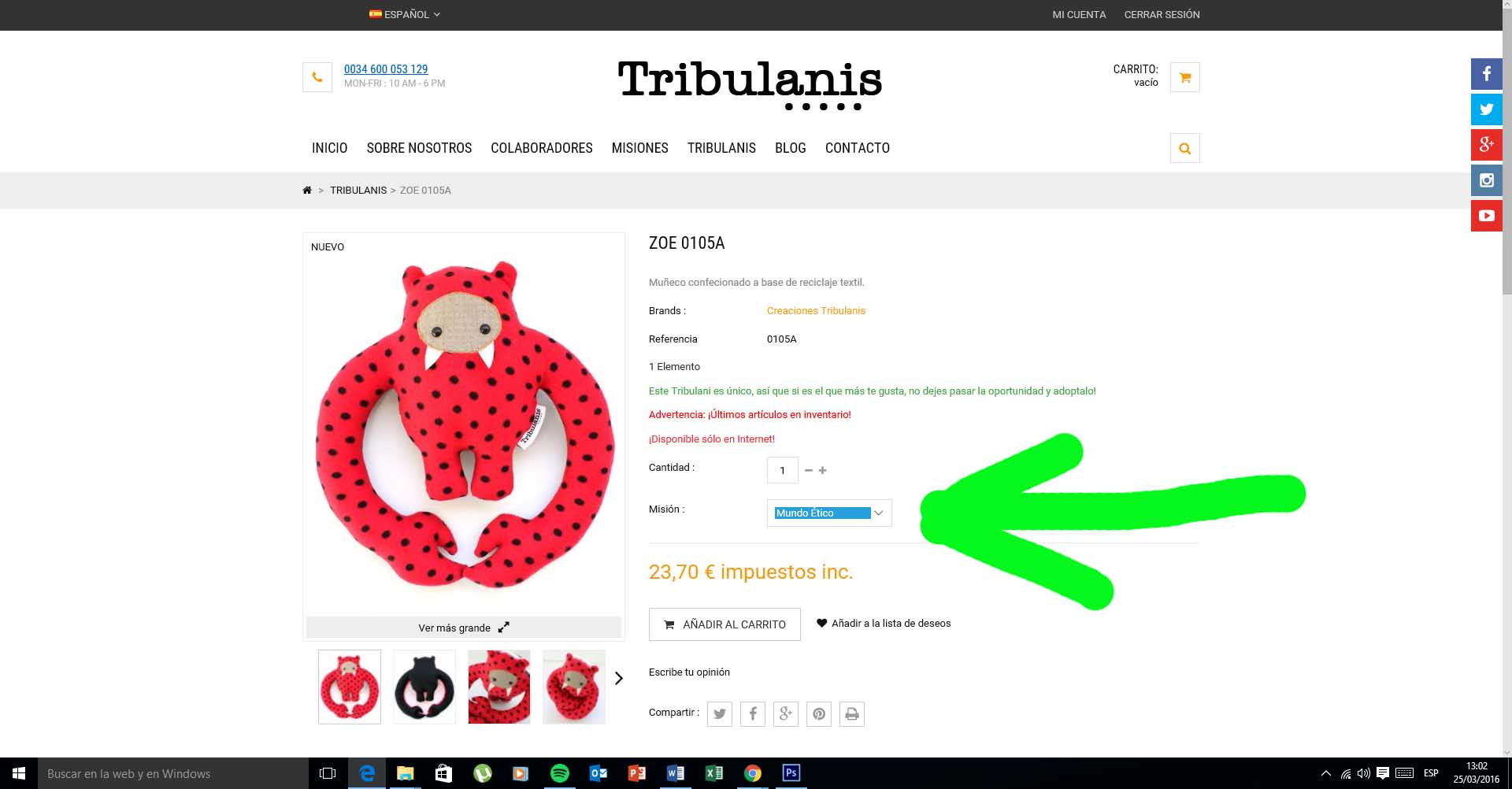 soyunelectroduende Posted March 28, 2016 Author Share Posted March 28, 2016 Puedes revisar nuestro módulo, creo que se adapta mejor a lo que indicas: http://www.alabazweb.com/es/modulos-para-el-front-office/321-modulo-de-canones-para-productos-de-prestashop.html AMA...Tu respuesta me pilla con el módulo que me recomendó Javier ya instalado. También se ve muy completo, pero ahora ya no puedo hacer otra cosa que centrarme en lo que tengo: Multi Accessories Pro. La descarga e instalación en el backoffice ha sido correcta y normal. Lo malo ha sido que al ejecutar una compra ficticia, la opción elegida no aprarece en la descripción de la compra, ni en la factura, ni en ningún sitio. Me imagino que sea un fallo mío a la hora de configurarlo, pero no doy con cual puede haber sido el error. Quitando ese pequeño (gran) detalle, si consigo arreglar eso, creo que es perfectamente válido para lo que necesitaba. También tengo que configurar que las pestañas salgan por encima del precio y ahí tendré que pedir ayuda...soy muy novata y a tanto no llego. Gracias por vuestro aporte! Link to comment Share on other sites More sharing options...