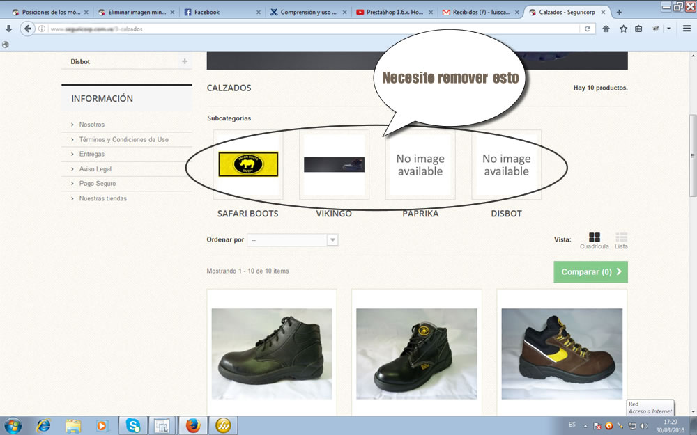 luiscabre Posted March 30, 2016 Author Share Posted March 30, 2016 Me refieron a las marcas de cada producto...... no quiero que esas imagenes de marcas no aparezcan dicen "IMAGES NO AVAILABLE" ...solo necesito que aparezcan los artículos. Link to comment Share on other sites More sharing options...