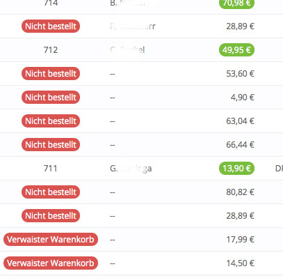 desta Posted April 8, 2016 Share Posted April 8, 2016 Hallo, es lässt mir keine Ruhe, deshalb muss ich mich nochmals melden. Das evt. Problem hatte ich im Juli 15 schon angesprochen: Ich habe unter Kunden - Warenkörbe immer noch eine Menge verwaister Warenkörbe bzw. noch mehr "Nicht bestellt"-Anzeigen, mehr als ausgeführte Bestellungen (!), viele davon ohne E-Mail-Adresse, sodass ich nicht nachfassen kann. Siehe Bild im Anhang. Wenn ich selbst jedoch einen Probelauf mache, geht das überhaupt nicht. Der verwaiste Warenkorb erscheint in der Liste erst dann, wenn ich meine Mail-Adresse angegeben habe, und die ist dann auch in der Liste sichtbar. Kulli hat mir seinerzeit geantwortet, das seien crawler. Wie gesagt: Das beunruhigt mich trotz seiner Antworten. Denn dann gingen mir ja eine Menge Kunden und vor allem Umsätze verloren. Ist evt. doch etwas nicht in Ordnung? Weiß jemand etwas dazu oder ist es so, wie Kulli sagt? (Sorry, Kulli, aber ich hoffe, Du verstehst, was mich umtreibt.) desta 1.6.0.9, Standard-Template Link to comment Share on other sites More sharing options...