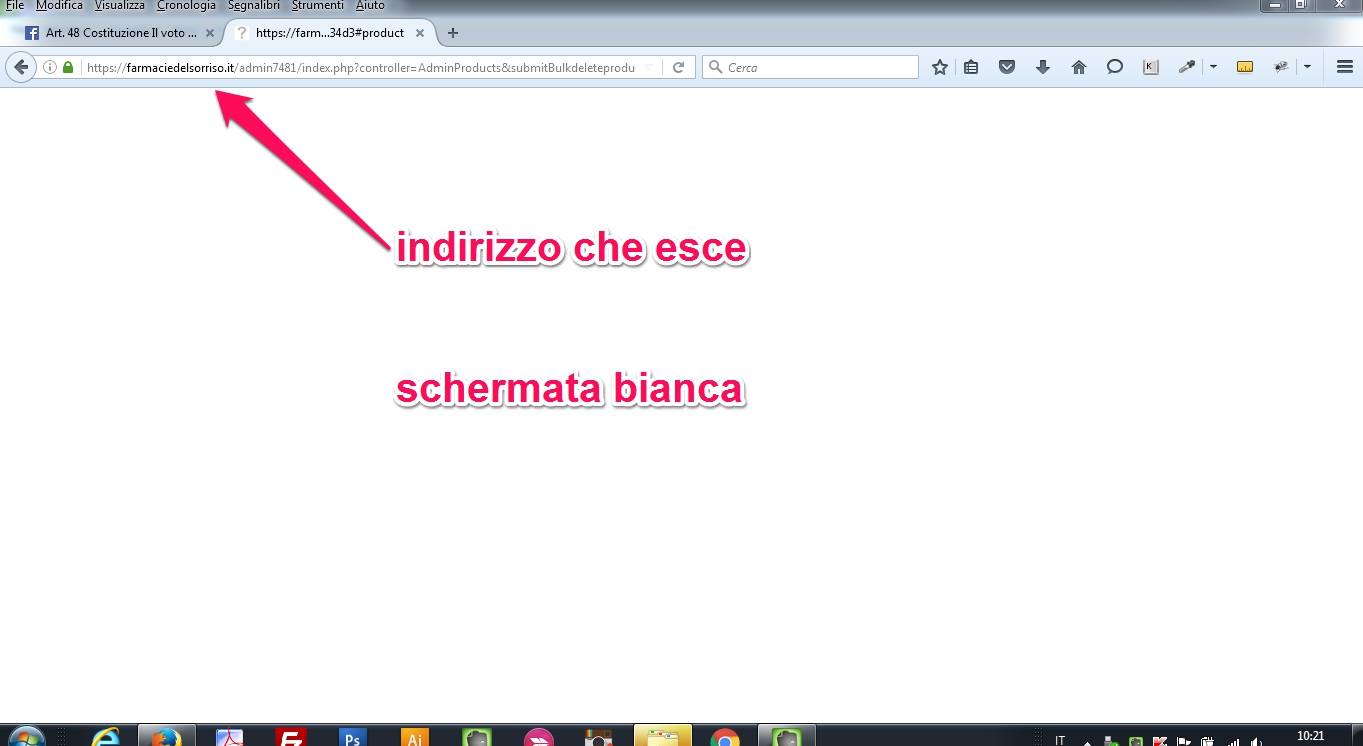 siengo1971 Posted April 9, 2016 Author Share Posted April 9, 2016 Tra l'altro se cancello uno per volta con il tasto laterale cancella esce cmq la schermata bianca devo riaggiornare la pagina ed effettivamente il prodotto è cancellato ma in alto mi esce questo errore. 2 errori Oggetto impossibile da caricare (o non trovato) Si è verificato un errore durante la cancellazione dell'oggetto. product (Impossibile caricare l'oggetto) non riesco ad allegare la schermata Link to comment Share on other sites More sharing options...