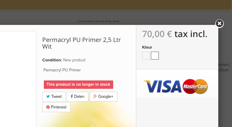 pdaalmeer Posted April 11, 2016 Share Posted April 11, 2016 Hallo, Ik heb even een vraagje; ik heb attributen toegevoegd aan de webshop (kleur) Dit werkt goed, maar het wordt nu weergegeven op de webshop als kleur (en dan grijs en wit blokje, zie atachement) Nu is het lichtgrijsblokje "alle kleuren behalve wit" en wit blokje" witte verf" Kan ik de tekst ook aanpassen zodat duidelijk is dat blokje 1 alle kleuren is, en blokje 2 wit? Verder is de helft nog in het Engels, ik heb een template gekocht via prestashop shop. Kan ik dit via een bestand o.i.d. vertalen, zonder alles handmatig per regel te moeten doen? Link to comment Share on other sites More sharing options...
