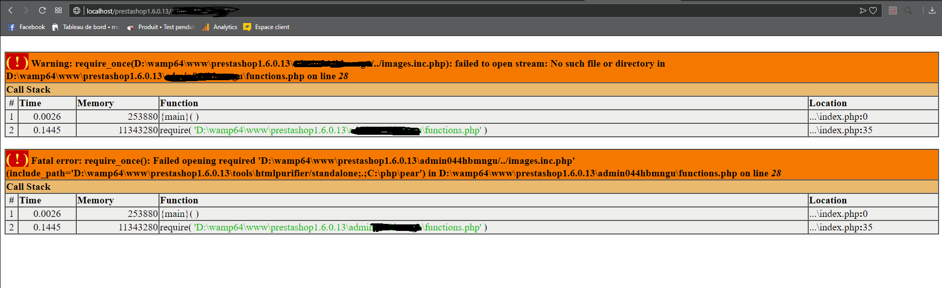Muriel26 Posted April 19, 2019 Share Posted April 19, 2019 (edited) Bonjour, Je suis désolée de m'incrustée comme ça dans la conversation mais je tente de passer ma boutique en prod sur wamp avant mise à jour et je ne parviens pas à avoir l'affichage en localhost J'ai modifié (enfin je pense que je n'ai rien oublié) tous les dossiers et tables mais la page du BO et le FO ne s'affiche pas (voir pièces jointes) J'ai joins la copie d'écran error apache log Merci pour votre aide Edited April 19, 2019 by Muriel26 (see edit history) Link to comment Share on other sites More sharing options...
