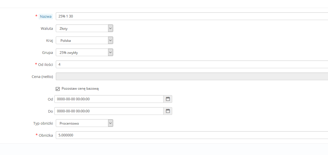 Stworzyłam regułę cenową dla tej grupy, w której wpisuję 5%