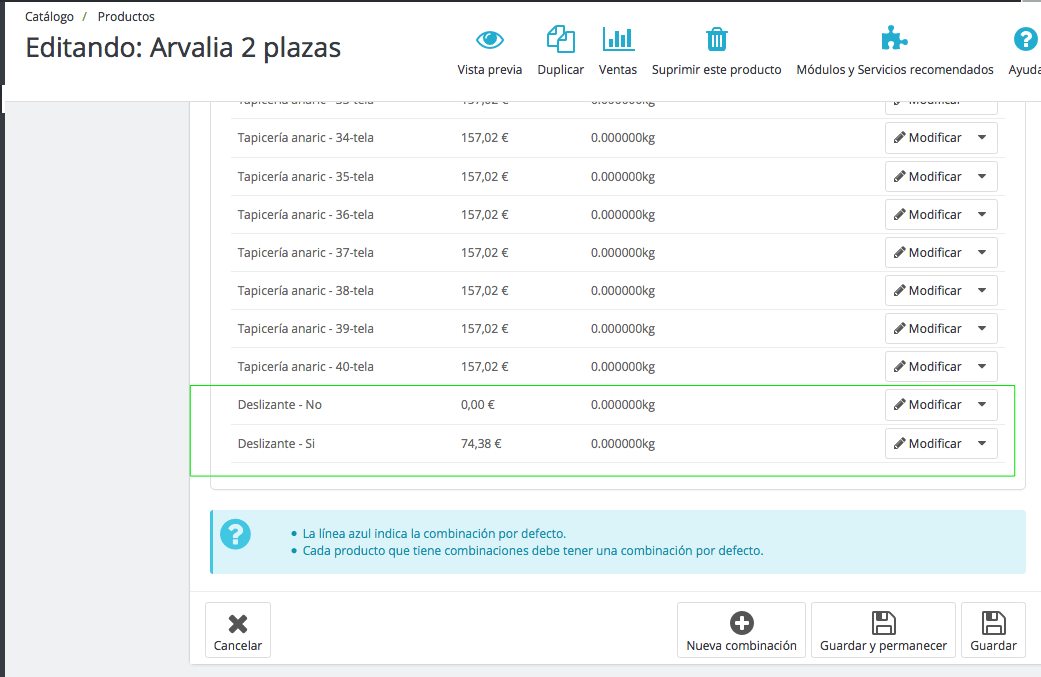 Gracias . Lo he intentado pero no me ha funcionado. Sigue sin tener en cuenta ese segundo atributo. No tengo claro si es un bug de prestashop o necesito algún módulo para hacer esto correctamente. ¿alguien tiene productos con varios atributos y les funciona esto? Aparece el desplegable para elegir el valor , pero luego no aparece ni en el resumen del carro ni se contabiliza en el precio.