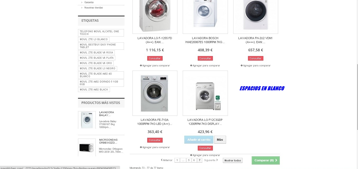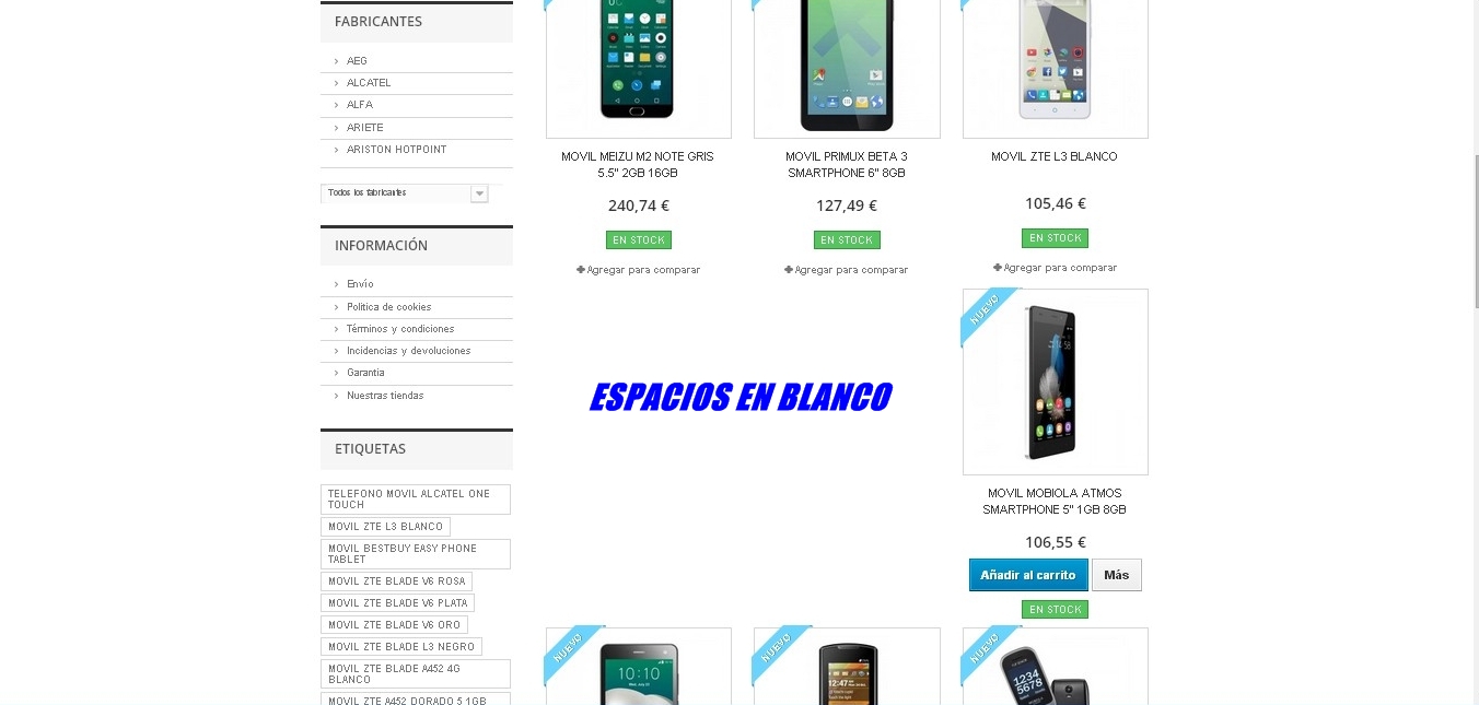 Espacios en blanco entre productos