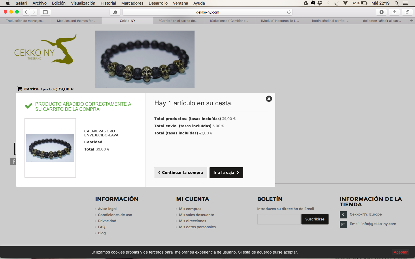 Diefco Posted April 21, 2016 Share Posted April 21, 2016 Hola Telepriva,Estas traducciones corresponden al modulo "blockcart" (no al front office).Tendrías que ponerlo así: https://gyazo.com/2df7175e8b4461a206aeb53703554861Y luego buscarle ay los textos que quieres cambiar en esa pantalla. Espero haberte sido de ayuda. 1 Link to comment Share on other sites More sharing options...