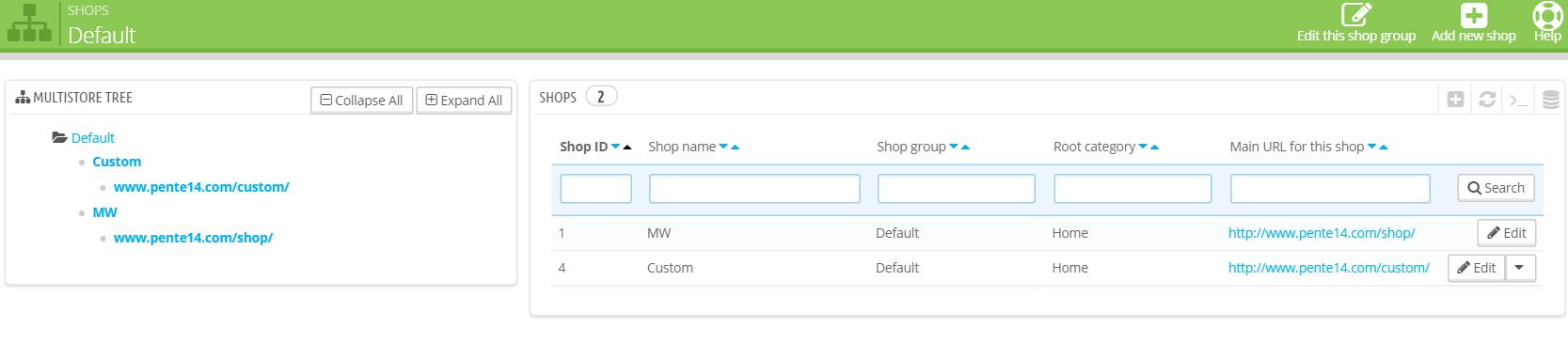 Pente14 Posted April 22, 2016 Author Share Posted April 22, 2016 Also I just noticed one thing:It seems that the http://pente14.com/shops/ is your main store (prestashop) URL, your other stores URL should under this main store, Something like http://pente14.com/shop/custom/. Hi It's getting better But now getting a 404 error on the default page of the Custom page of www.pente14.com/shop/custom ..... Any thoughts? Once again, I am very grateful for your support Link to comment Share on other sites More sharing options...