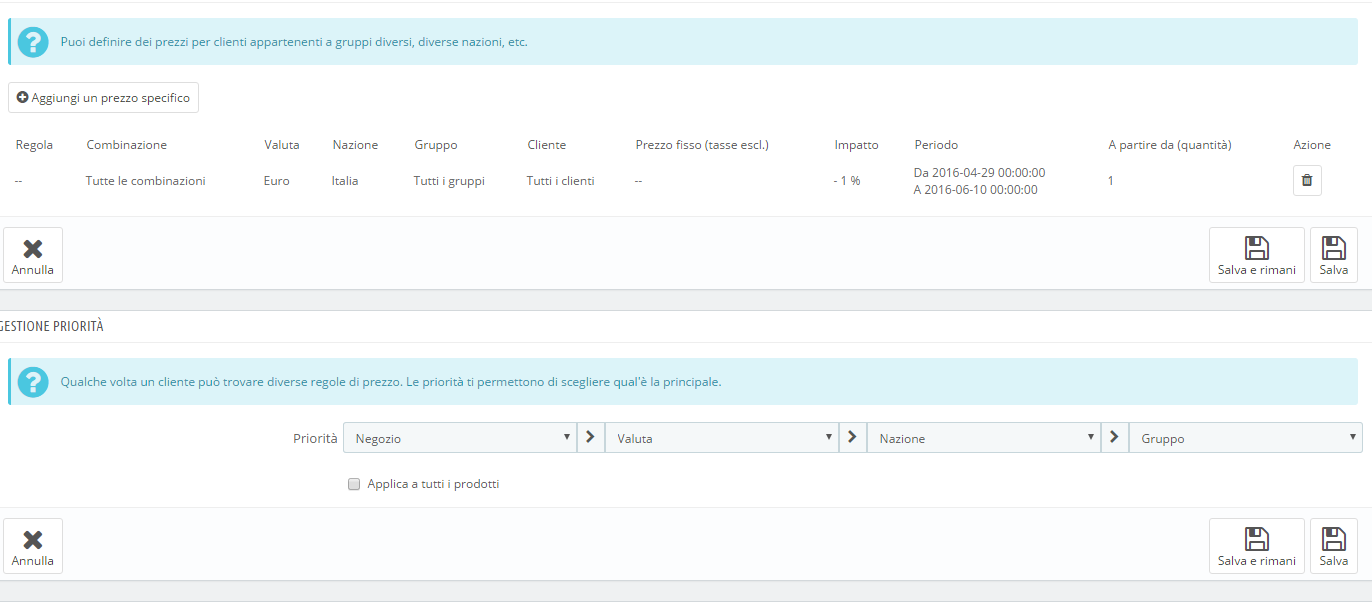 zeuu Posted April 29, 2016 Share Posted April 29, 2016 Ciao, la mia problema e questa. Dopo che imposto un prezzo specifico per una data su un prodotto dopo mezza notte non c'e più l'offerta. Versione 1.6.1.4 ecco la demo in front: http://www.anafshop.it/monitor/77137-acer-s277hkwmidpp-umhs7ee001-eleganza-in-ultra-hd-4k-2k.html Link to comment Share on other sites More sharing options...