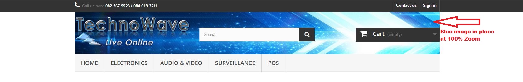 TWPU Posted May 10, 2016 Author Share Posted May 10, 2016 Please see what happens to the Header Image when you zoom in or out on the website. It moves completely out of the website header when zooming. www.technowave.co.za Link to comment Share on other sites More sharing options...