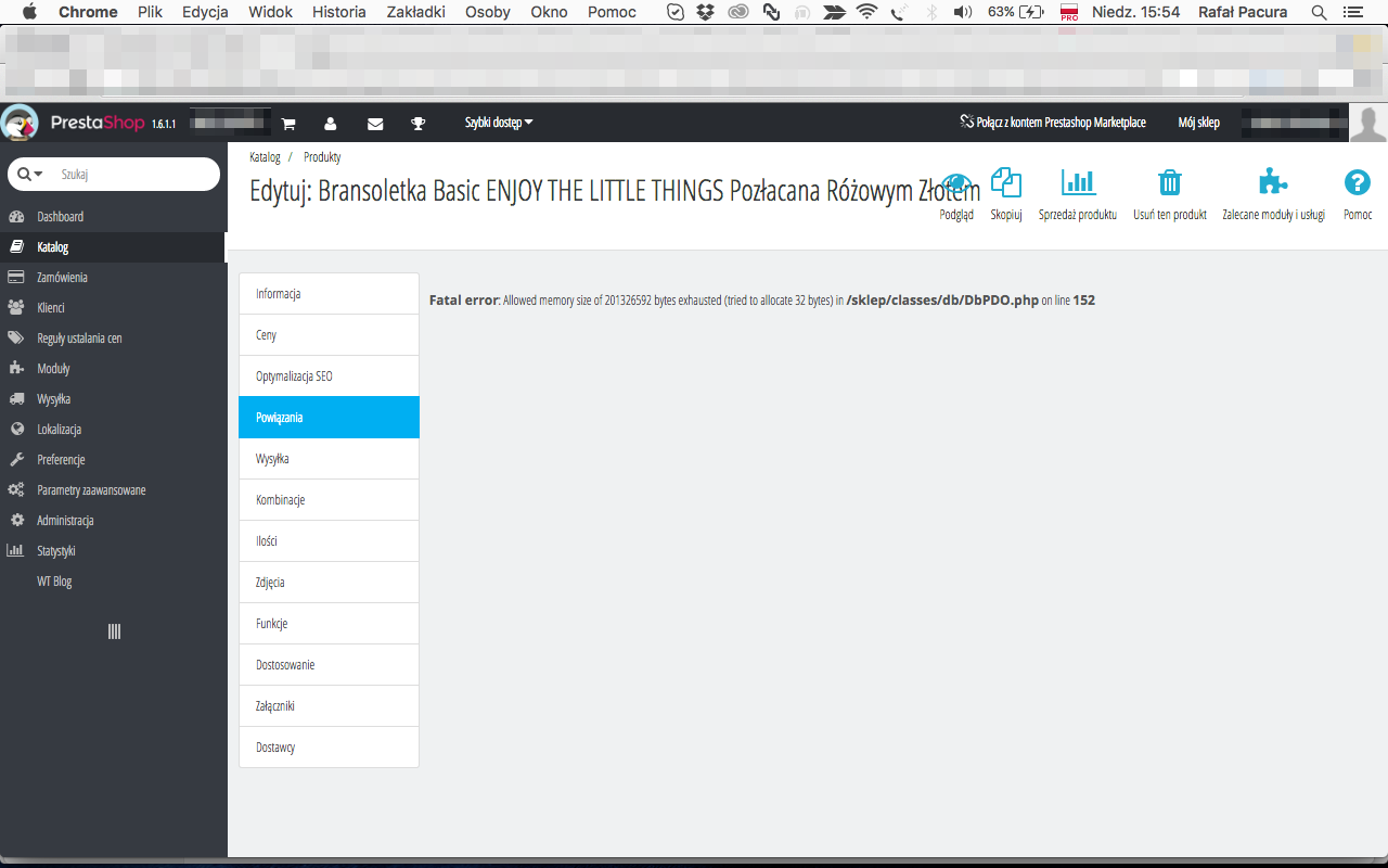Teraz jak wchodzę w edycję produktów pojawia się wpis: